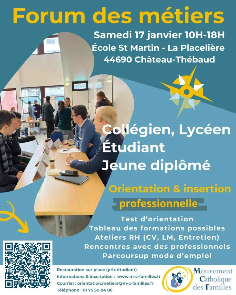 Le MCF propose son Forum des métiers (Orientation & insertion professionnelle) le 17 janvier 2026 à Nantes ouvert aux collégiens, lycéens, étudiants ou jeunes diplômés :