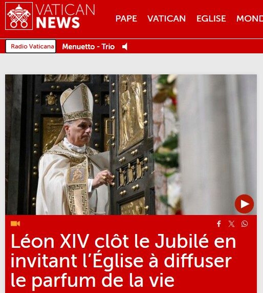 Le Pape Léon XIV a clôturé la Porte Sainte de la Basilique Saint Pierre de Rome lors de la célébration de la messe de la fête de l’Épiphanie. Il clôture ainsi le Jubilé de l’Espérance (24 décembre 2024 – 6 janvier 2026) ouvert par son prédécesseur.