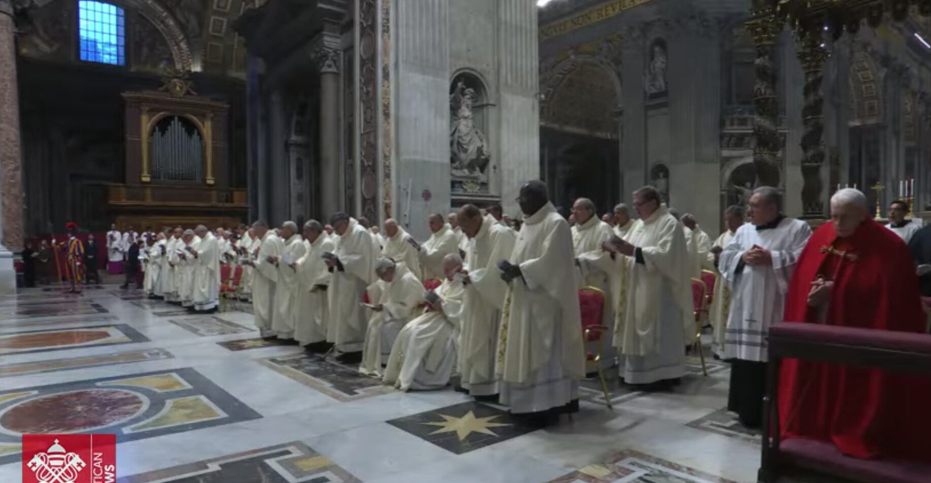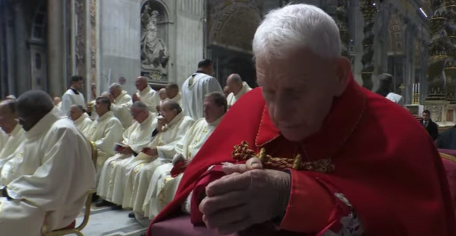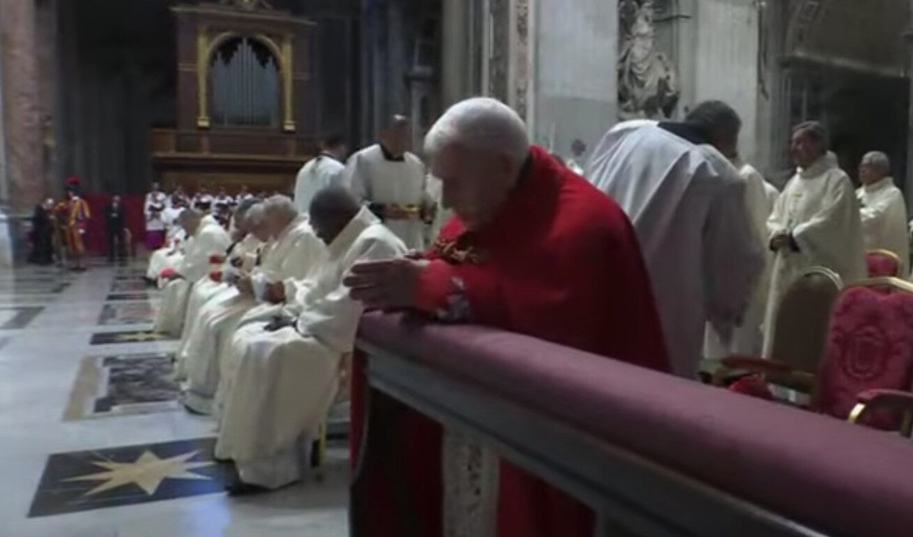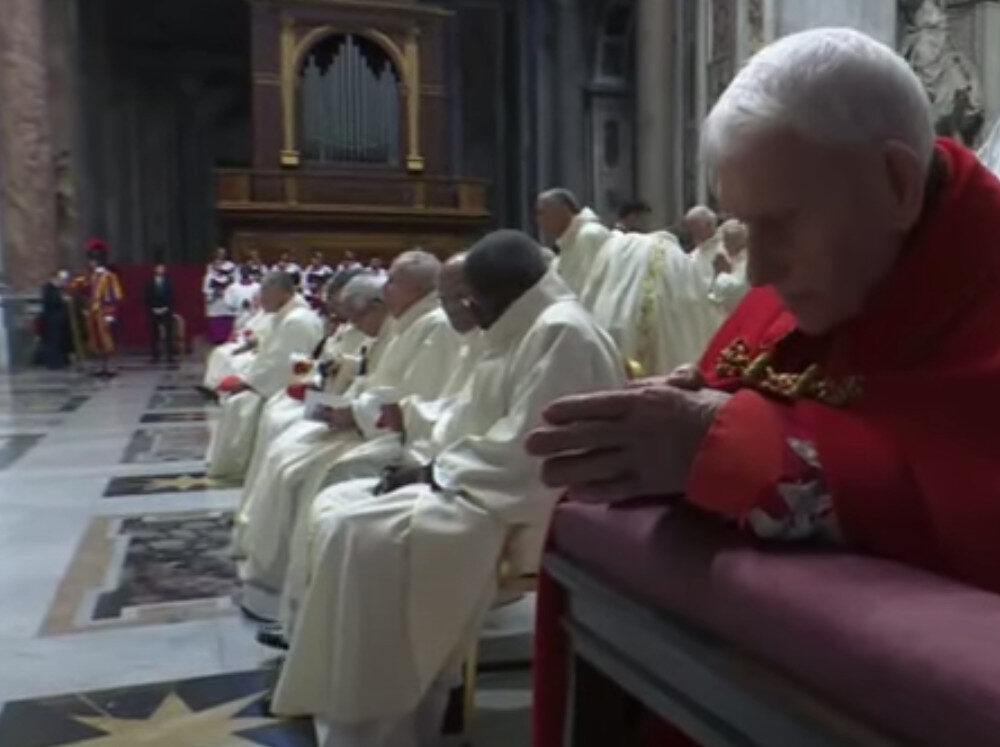 On le voit à genoux durant la communion, pendant que les autres étaient assis (on aperçoit un clerc avec un ciboire juste derrière)… Cette désinvolture de nombreux cardinaux explique sans doute pourquoi ils n’ont pas voulu aborder le sujet explosif de la liturgie durant ce Consistoire.