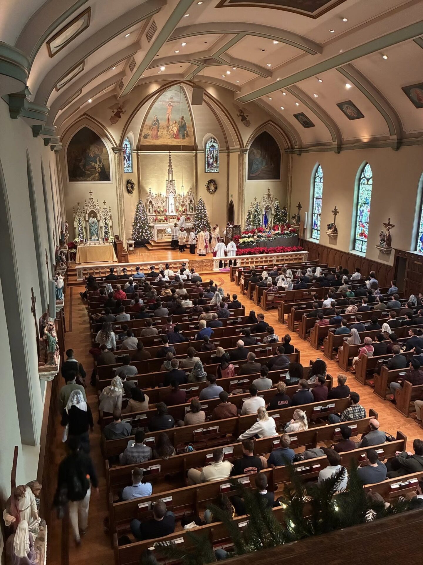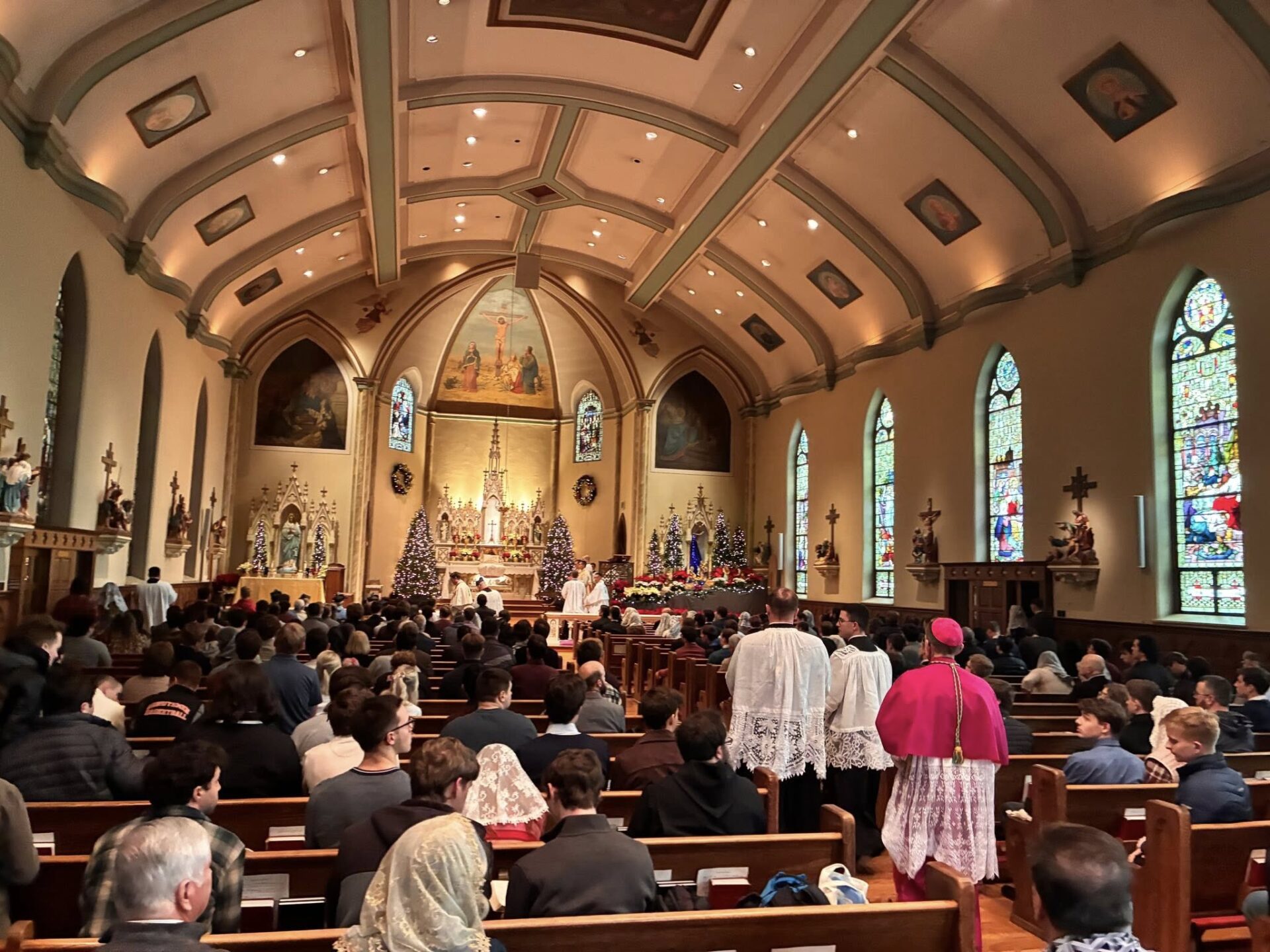 Le 2 janvier, Mgr Robert Reed, évêque auxiliaire de Boston, a célébré une messe pontificale (messe traditionnelle) pour plus 400 étudiants assistants à la conférence FOCUS Catholic SEEK en l’église Saint Patrick de Columbus. Le service de messe était assuré par des séminaristes de la Fraternité Saint-Pierre.