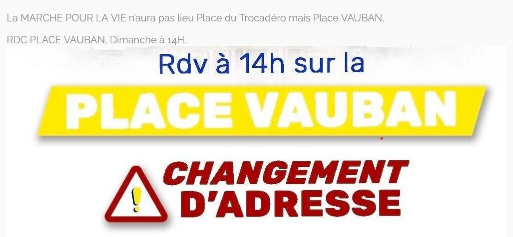 Accueil » Nos archives » Marche pour la Vie ce dimanche 18 janvier à Paris (Place Vauban 14h00) La video de la semaine Marche pour la Vie ce dimanche 18 janvier à Paris (Place Vauban 14h00) En Marche pour la Vie Article précédentEmission Terres de Mission (n°443, 18 janvier 2026) Article suivantLe vin nouveau de la vraie joie 18 janvier 2026