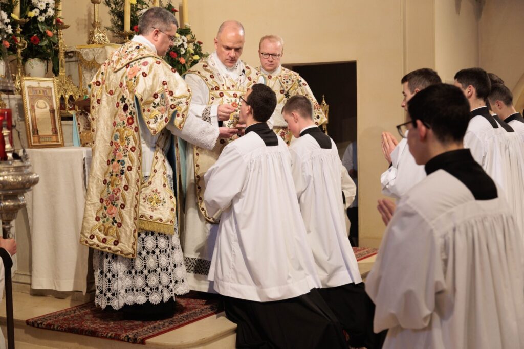 Le 2 février, présentation de Jésus au Temple, comme habituellement dans les séminaires de la Fraternité Saint-Pie X, l’abbé Davide Pagliarani, Supérieur Général, a présidé la cérémonie de prises de soutane de 22 séminaristes du Séminaire Saint Curé d’Ars de Flavigny : 15 Français, 5 Italiens, 1 Belge et 1 Kenyan.