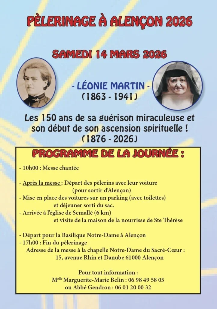 Accueil » Nos archives » Pèlerinage à Alençon (FSSPX) le 14 mars Summorum Pontificum Pèlerinage à Alençon (FSSPX) le 14 mars Le Prieuré Saint Jean-Eudes (Gavrus) propose un pèlerinage à Alençon le samedi 14 mars : Article précédentOrléans : un prêtre interdit de tout ministère à Châteaurenard pour corruption de mineur Article suivantChandeleur : une procession à Angers (FSSPX) 6 février 2026