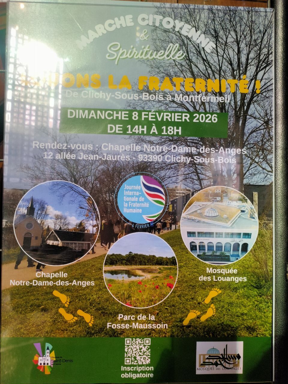 Curieuse affiche que cette « manifestation spirituelle et fraternelle » qui, le 8 février dernier a fait marcher les fidèles de Clichy sous Bois à Montfermeil, et de la chapelle Notre-Dame des Anges à… la mosquée Notre-Dame des Louanges. Elle porte les logos de ladite mosquée et du diocèse de Saint-Denis en France, a été organisée par la paroisse de Clichy, la mosquée de Montfermeil et les services diocésains de relations avec l’islam et le judaïsme, mais est-ce vraiment le rôle d’un diocèse d’illustrer un roman sorti il y a un peu plus de dix ans ?