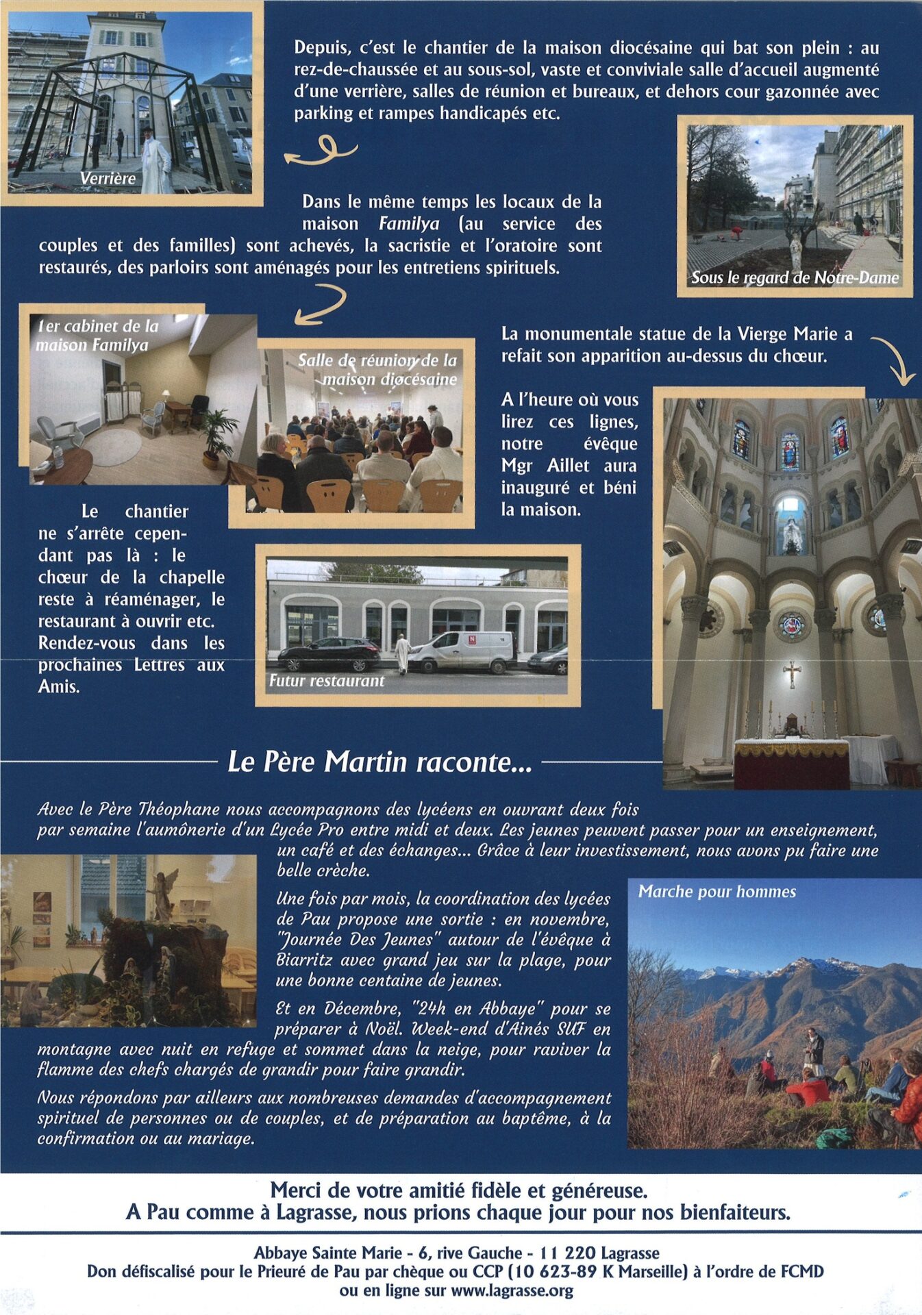 Les Chanoines Réguliers de la Mère de Dieu de l’abbaye Sainte-Maire de Lagrasse donnent des nouvelles de leur prieuré à Pau :