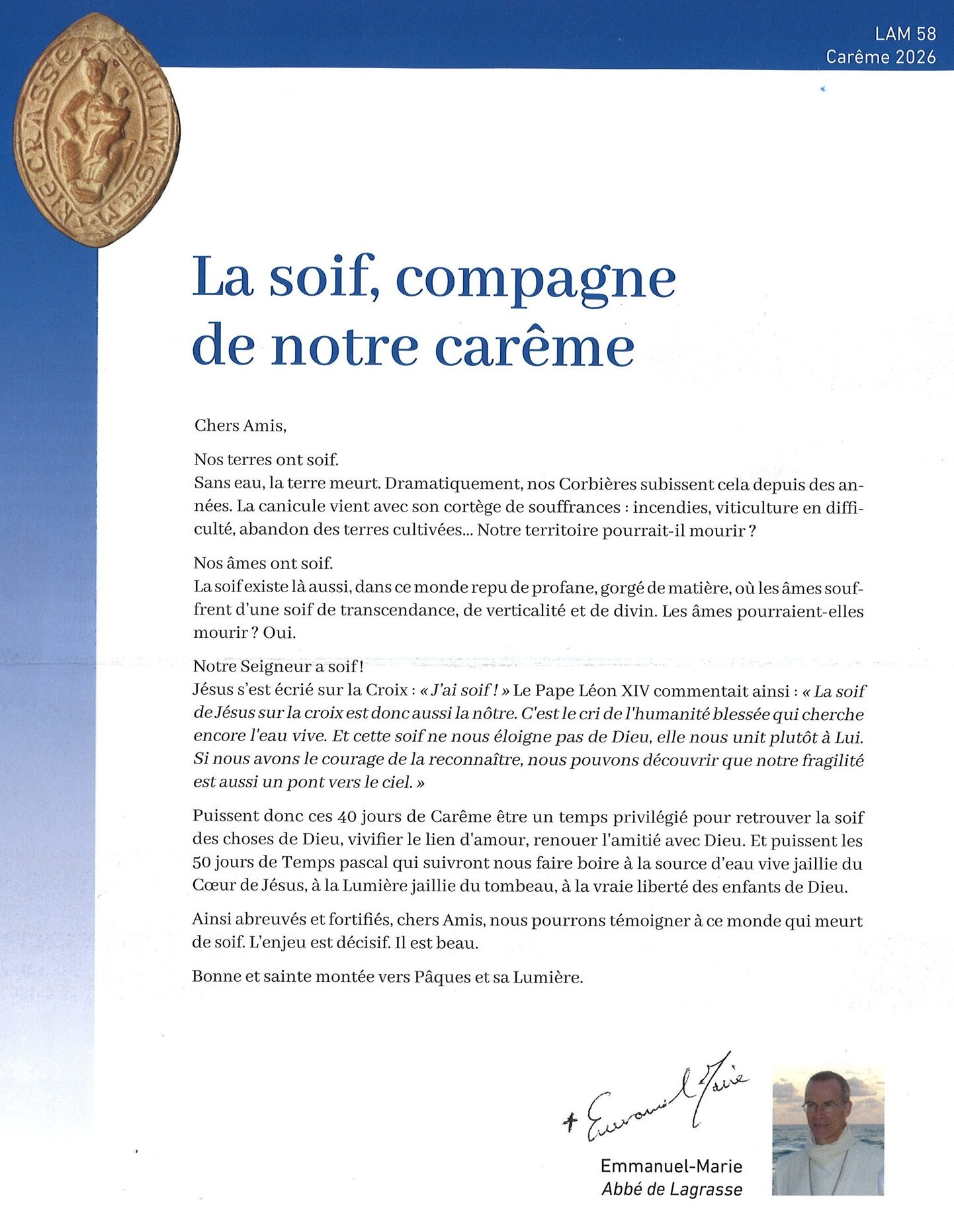 Dernière lettre aux Amis de l’abbaye de Lagrasse (n°58)