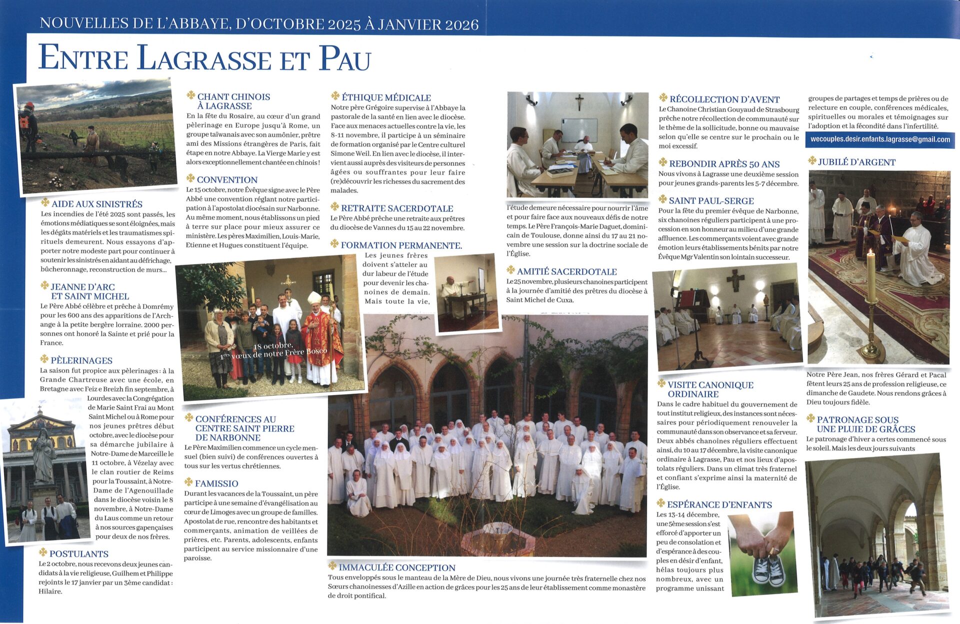 Dans la dernière lettre aux Amis de l’abbaye Sainte-Marie de Lagrasse (n°58, Janvier 2026), Mgr Emmanuel-Marie évoque le Carême qui s’ouvre, ainsi que les derniers mois à l’abbaye et dans son prieuré de Pau :