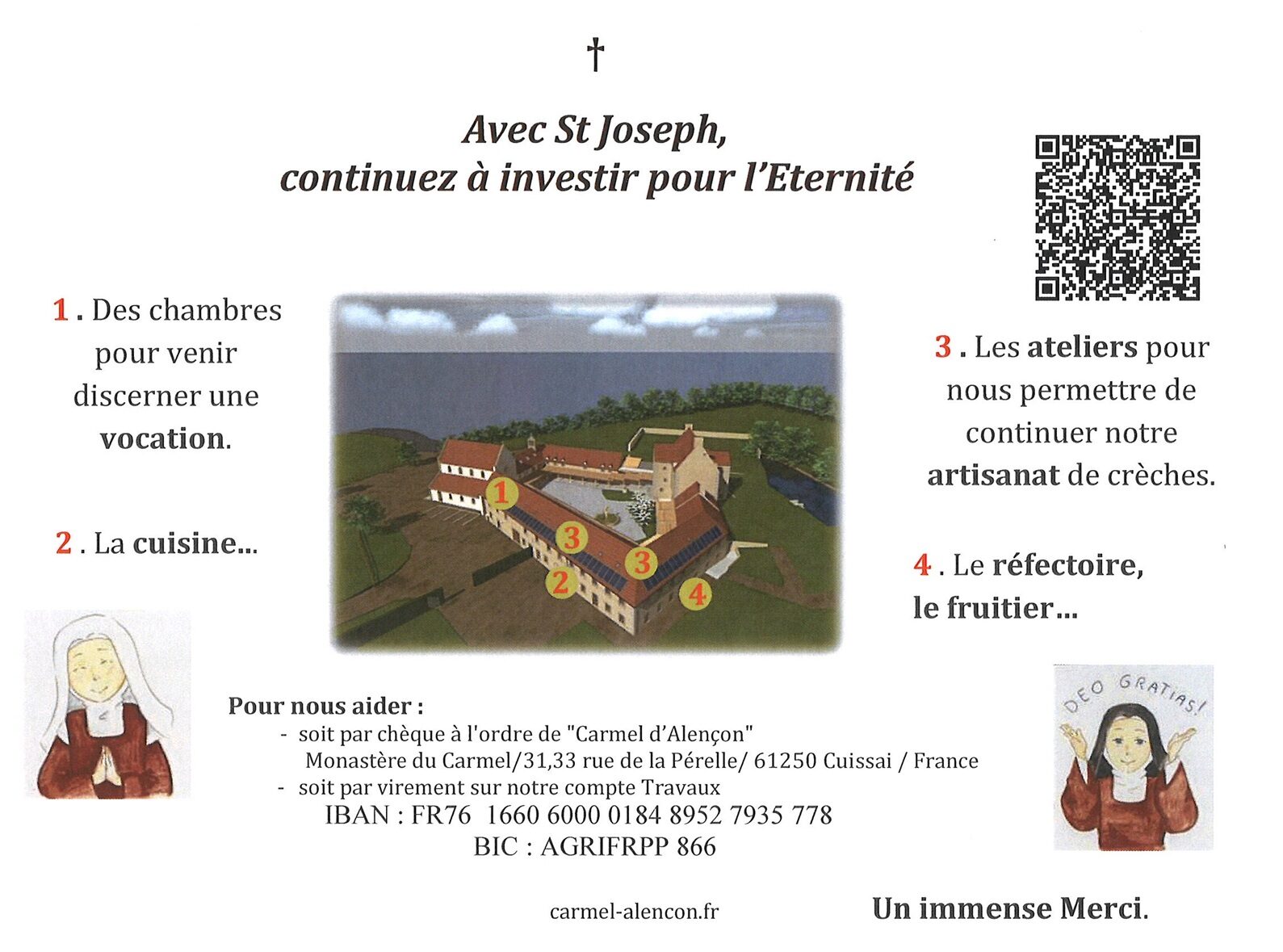 Un lecteur nous fait suivre cet appel du Carmel d’Alençon. Le Carmel du Sacré-Coeur et de l’Immaculée Conception d’Alençon a quitté le monastère historique, dans le centre d’Alençon, pour Cuissai en 2019 (8 km au nord-ouest d’Alençon). Depuis la reprise de la forme extraordinaire du rite romain en 2013, le Carmel a connu un regain de vocations.
