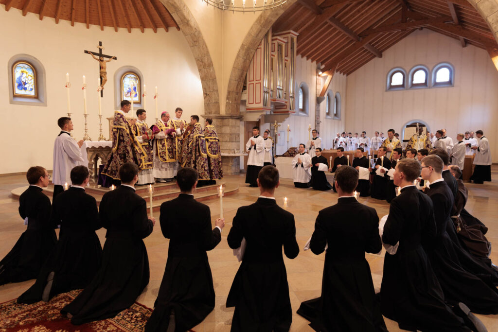 30 séminaristes et 3 religieux ont reçu au séminaire d’Ecône (Suisse) la tonsure et les premiers ordres mineurs ce 28 février 2026, lors d’une messe pontificale célébrée par Mgr Alfonso de Galarreta.