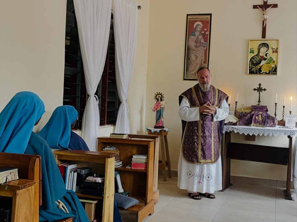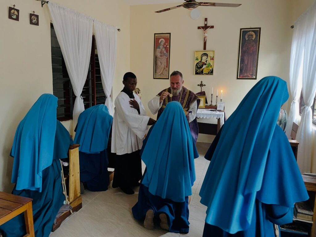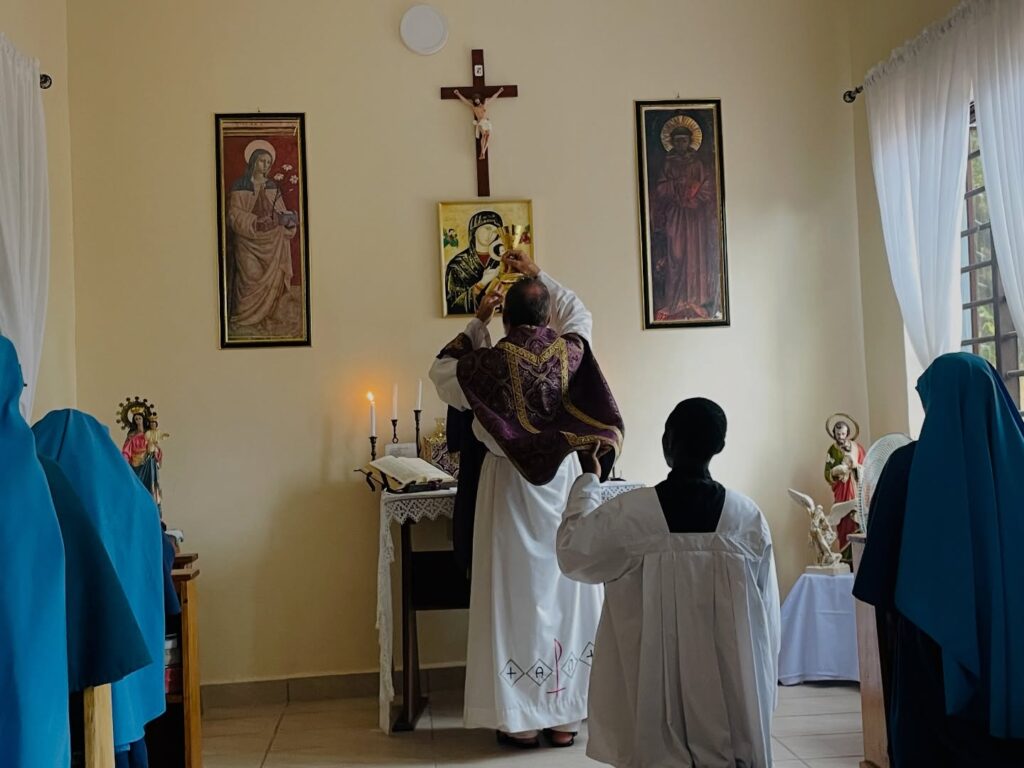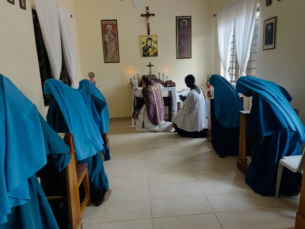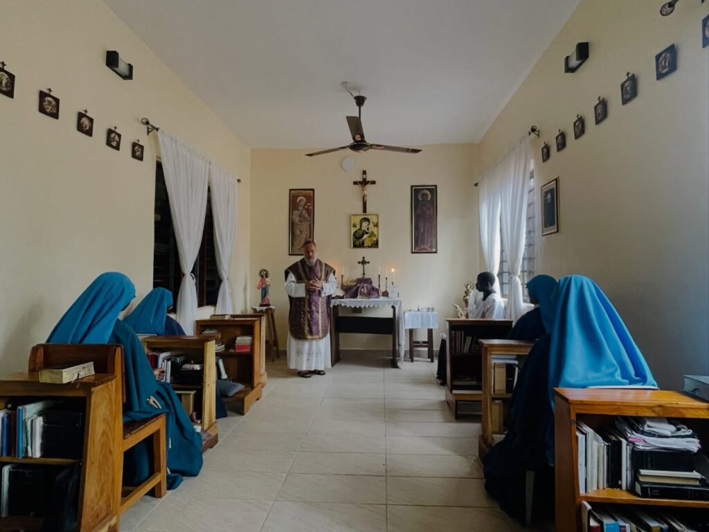 La messe célébrée au couvent franciscain pour les sœurs franciscaines. Dans le calme de leur maison de couvent, le Saint Sacrifice de la Messe continue d’être le centre de leur vie – nourrissant leur vocation de prière, de sacrifice et de service aimant à Dieu et à Son Église.