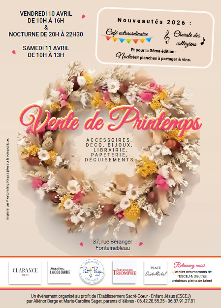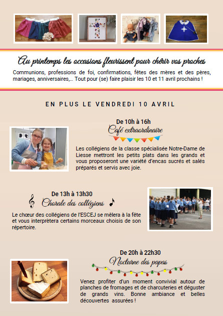 L’Ecole du Saint-Enfant Jésus et le Collège du Sacré-Coeur vous invitent à leur Vente de Printemps les 10 et 11 avril :