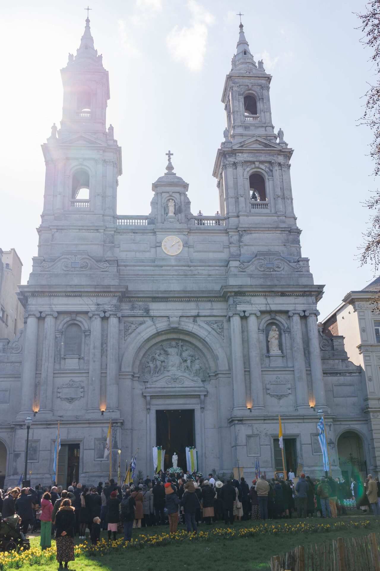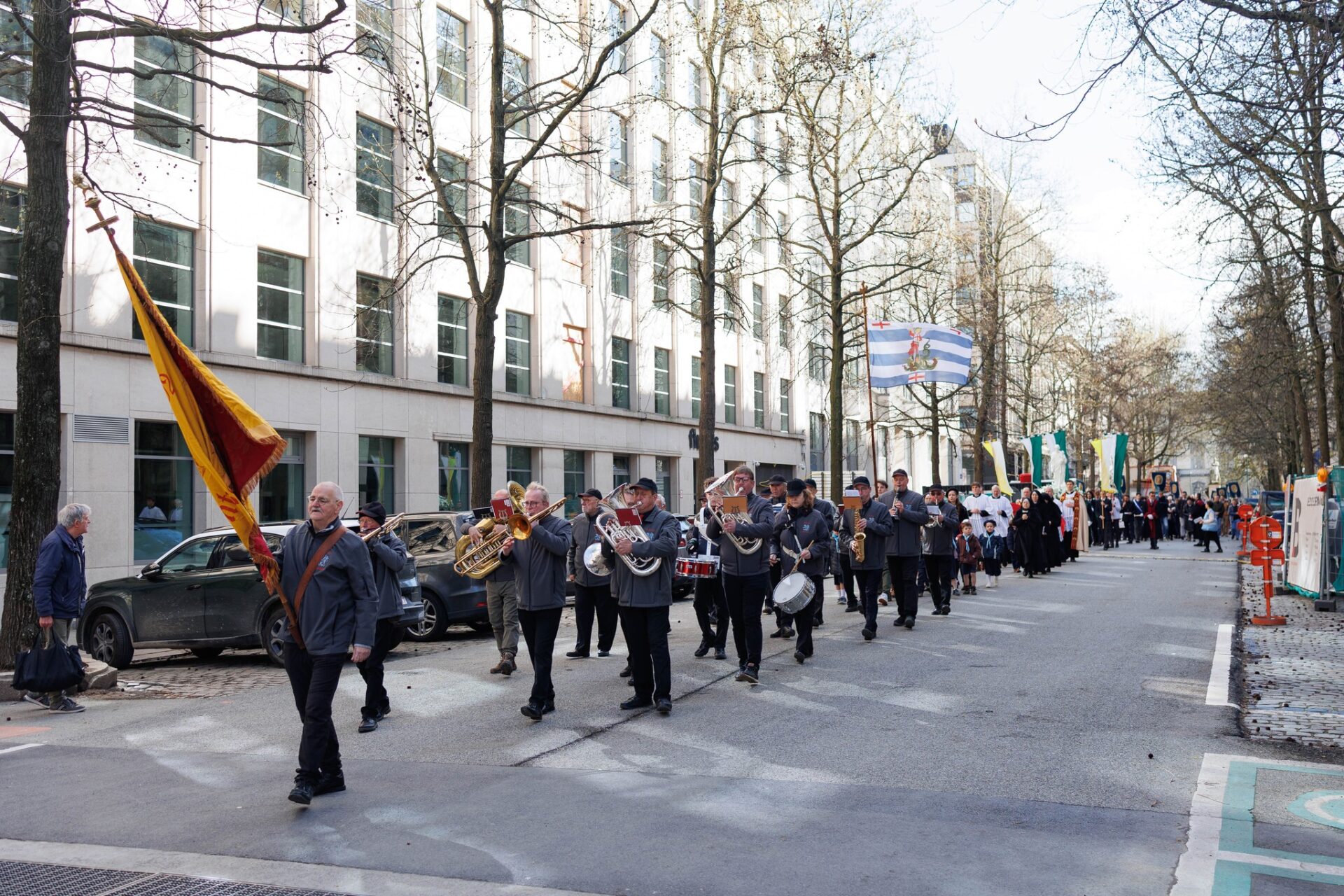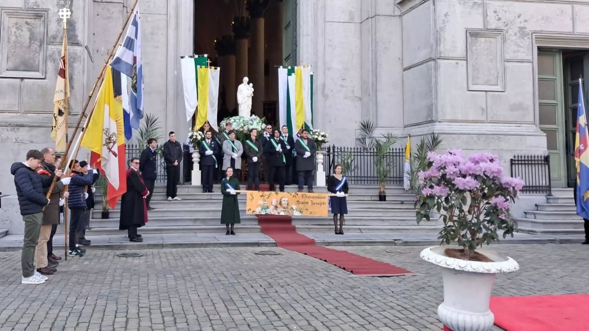 Ce dimanche 15 mars, à l’Église Saint-Joseph de la FSSPX à Bruxelles, près de 700 fidèles, accompagnés de 120 élèves de l’école de garçons L’Étoile du Matin, ont participé à une belle procession dans les rues de la capitale.Cette manifestation de foi était organisée à l’occasion du dévoilement de la nouvelle statue de saint Joseph, installée sur la façade récemment restaurée de l’église.