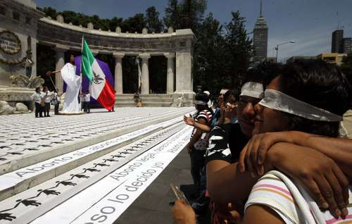 Les yeux bandés, des figurines de carton : c’est ça, la dignité de la femme ? Source photo : Jornada. |