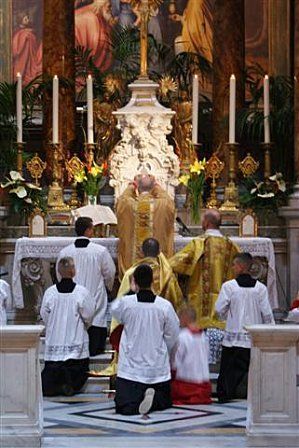 d’esprit traditionnel (il porte soutane, amict et joint les pouces et l’index après la consécration) mais opposait à la forme extraordinaire. L’autre prêtre devrait venir lui aussi du diocèse
