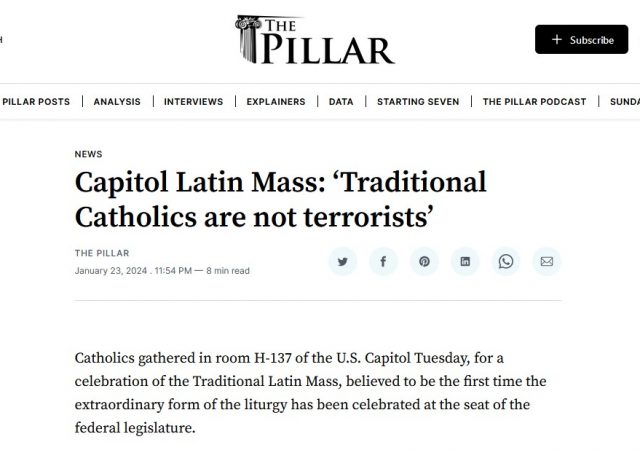 Le site anglophone The Pillar évoque la messe traditionnelle qui a été célébrée au Capitole (Washington, Etats-Unis) ce mardi 23 janvier (Traduction par nos soins) :