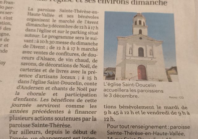 Jésus avait chassé les marchands du temple. Dans le diocèse d’Angers – enfin à ses confins, puisque la paroisse Sainte-Thérèse en Haute-Vallée regroupe sept clochers Lire la suite ...
