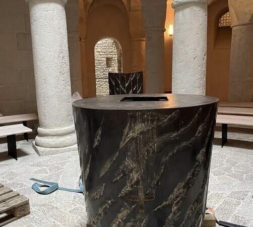 Dijon : installation du mobilier liturgique de la rotonde saint Bénigne