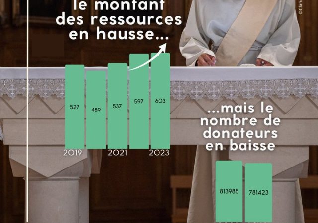 En 2023, les quatre ressources courantes de l’Église en France que sont le Denier et les 3 ressources liées à la liturgie (quêtes, offrandes de messe, casuel) ont augmenté de 0,5% par Lire la suite ...
