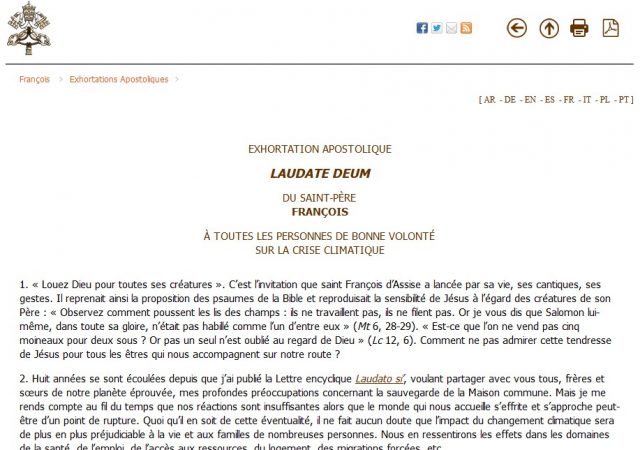EXHORTATION APOSTOLIQUE LAUDATE DEUM DU SAINT-PÈRE FRANÇOIS