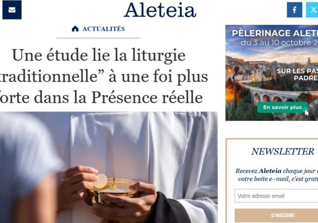Aleteia évoque l’étude qui vient de paraître dans la revue Catholic Social Science Review qui indique que les fidèles qui assistent à la messe traditionnelle manifestent Lire la suite ...