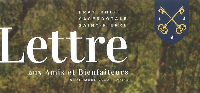 Dernière Lettre aux Amis et Bienfaiteurs de la FSSP (Septembre 2022)