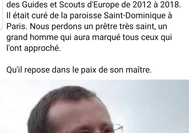 Un lecteur nous informe ce soir du rappel à Dieu de l’abbé Cyril Gordien, prêtre du diocèse de Paris. Agé de 48 ans, l’abbé Gordien est décédé ce soir des suites d’une Lire la suite ...