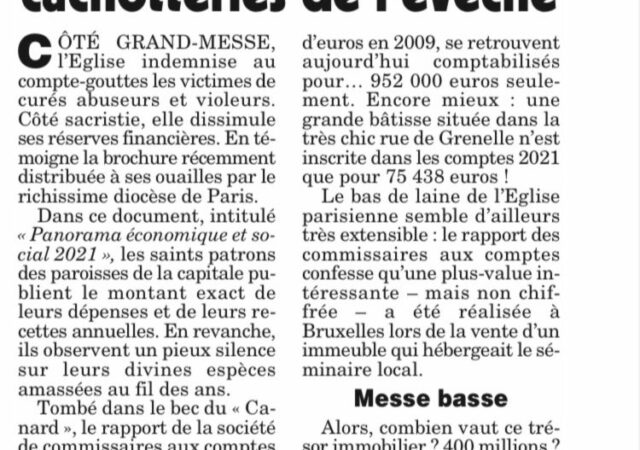On ne sera pas étonné que Le Canard enchaîné se paye le diocèse de Paris en épinglant le bilan 2021 de l’Association diocésaine de Paris (ADP). Pour le Canard enchaîné, le trésor Lire la suite ...
