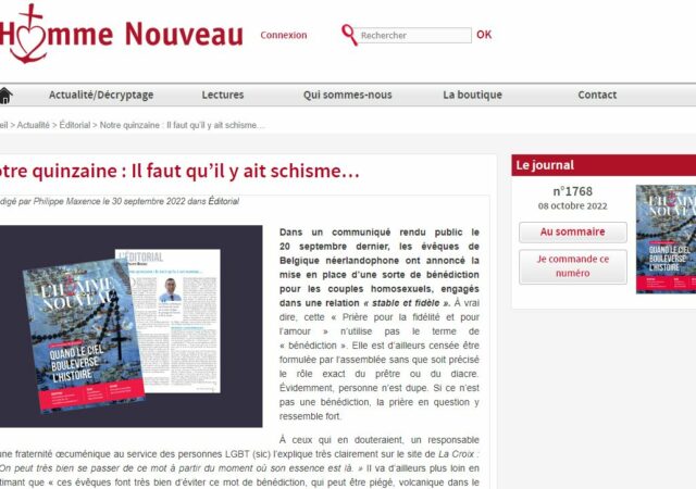 L’évêque d’Anvers Mgr Bonny, connu pour son alignement sur le schisme allemand et sa défense frénétique du lobby LGBT, est aussi l’évêque en charge des abus sexuels Lire la suite ...