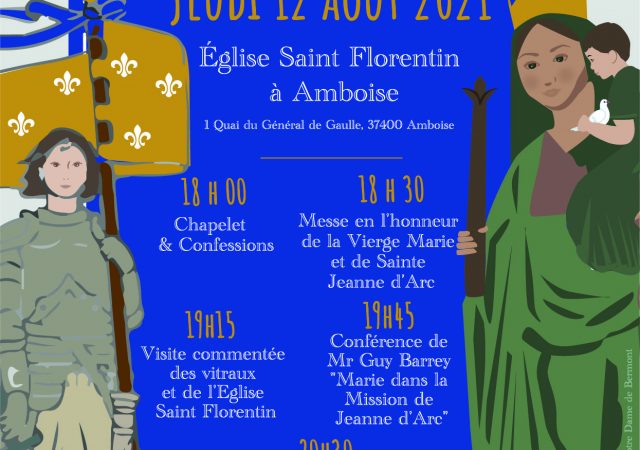 Ce 12 août à Amboise, en l’église Saint-Florentin, est organisée une soirée sur le thème de la Vierge Marie dans la mission de sainte Jeanne d’Arc. Cette église se trouve Lire la suite ...