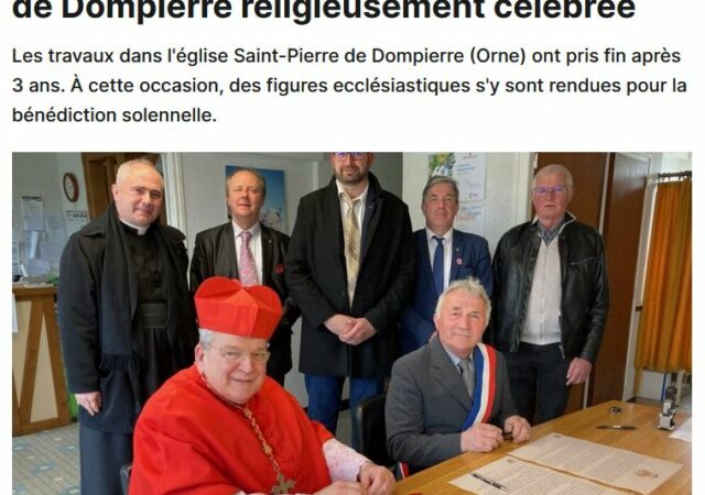 Le journal local L’Orne combattante revient sur la bénédiction de l’église Saint-Pierre de Dompierre (61) inaugurée par le cardinal Raymond Burke le samedi 22 avril. Lire la suite ...