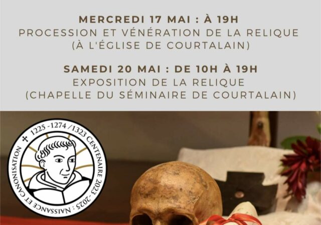 Les reliques de Saint Thomas d’Aquin seront exposées au Séminaire Saint-Vincent de Paul de Courtalain (Institut du Bon Pasteur) le 17 mai (église paroissiale de Courtalain) Lire la suite ...