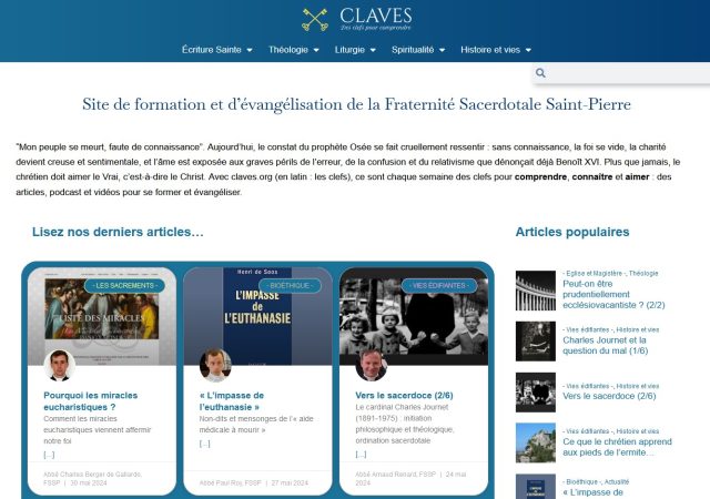 Nous avons déjà évoqué le nouveau site de formation de la Fraternité Saint-Pierre : Claves. On peut y trouver de très nombreux articles, des vidéos, de podcasts sur les sujets d’actualité, Lire la suite ...