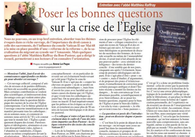 Le Quotidien Présent (édition du 15 août 2020) a interrogé l’abbé Mathieu Raffray, de l’Institut du Bon Pasteur, qui a dirigé un ouvrage collectif intitulé : « Quelle Lire la suite ...