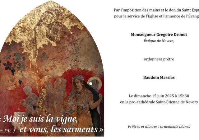 Baudouin Massias va être ordonné prêtre le 15 juin prochain à 15h30 à Saint-Etienne de Nevers.