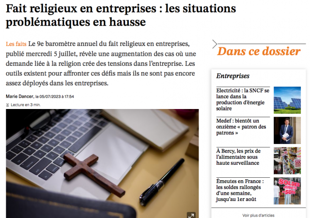 « 65% des salariés français disent avoir observé des faits religieux sur leur lieu de travail, un record », s’alarmait ce matin Europe1 à l’image de toute la presse. Lire la suite ...