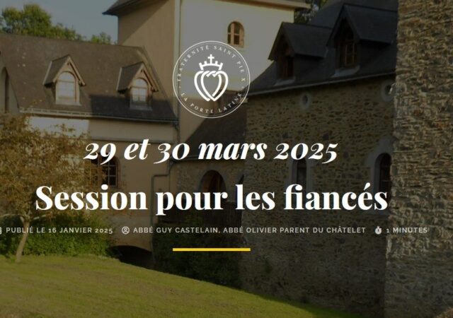 La Fraternité Saint-Pie X organise une session de préparation au mariage pour fiancés les 29 et 30 mars 2025 au Moulin du Pin (53).
