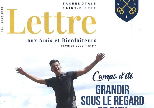 Dans sa dernière lettre aux Amis et Bienfaiteurs (Février 2023, n°114), l’abbé Thibault Lire la suite ...