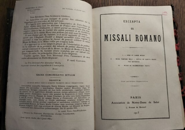 En février 1915, l’association Notre Dame du Salut – qui avait ouvert parmi ses membres une souscription pour fournir des autels portatifs aux aumôniers militaires Lire la suite ...