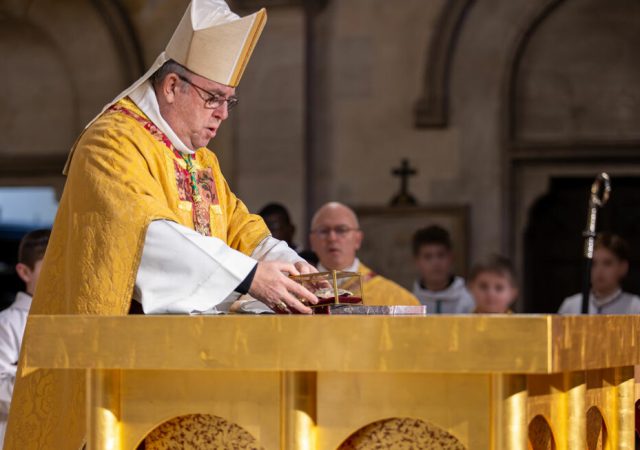 Le 19 janvier dernier Mgr Bertrand a béni le nouvel autel de la basilique d’Argenteuil dans le diocèse de Pontoise :