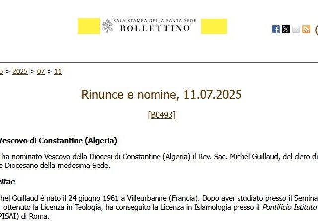 Le Saint Père a nommé ce 11 juillet Mgr Michel Guillaud, évêque de Constantine (Algérie).