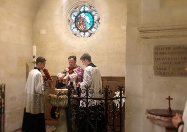 A l’occasion de la Vigile de la Pentecôte, l’abbé Lutz-Weist, IBP curé de la paroisse Saint-Eloi (Bordeaux), a procédé à la bénédiction des fonts baptismaux de son église, Lire la suite ...