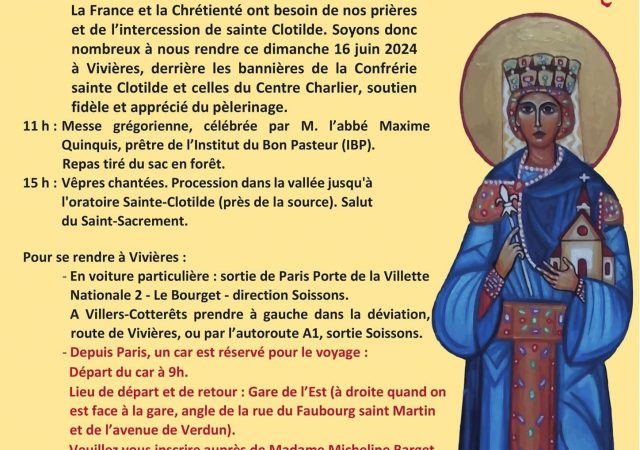 Le prochain pèlerinage de la Confrèrie Sainte Clotilde à Vivières (02) est fixé au dimanche 21 juin 2020.