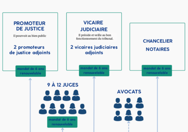 Treize juges le composent : 8 prêtres et 5 laïcs dont 4 femmes.