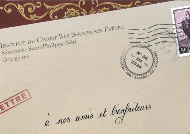 Le Séminaire Saint-Philippe Néri (Gricigliano), séminaire de l’Institut du Christ Roi Souverain Prêtre, publie sa lettre aux Amis et Bienfaiteurs (n°56, Mars 2026) en donnant Lire la suite ...
