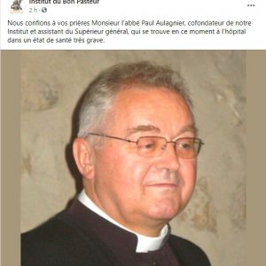 Appel aux prières pour l’ame de l’abbé Aulagnier. RIP.