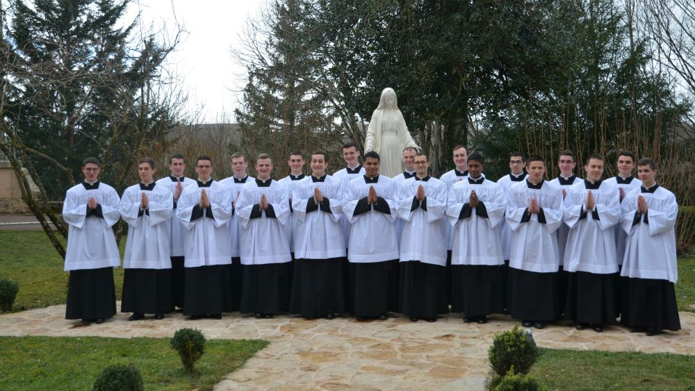 C’est en la fête de la purification de la Très Sainte Vierge Marie que vingt jeunes gens, issus de trois continents, ont revêtu la soutane au Séminaire Saint Curé d’Ars : treize Français, deux Italiens, un Anglais, un Brésilien, un Indien, un Sri Lankais et un Suisse.